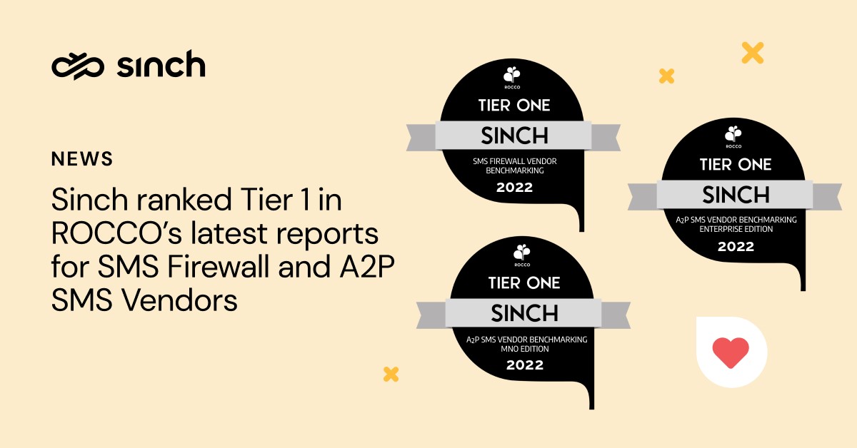 Sinch Receives a Tier One Ranking in ROCCO’s Latest Reports for Its A2P Monetization Product Suite and Its SMS Firewall Product for MNOs, and A2P SMS Products for Enterprises