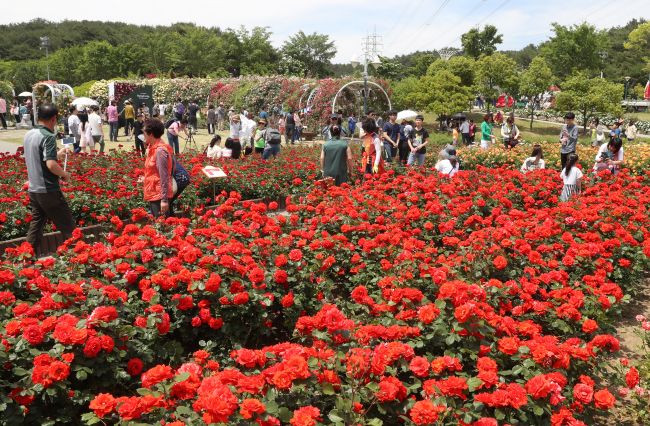 The 15th Gokseong World Rose Festival opened Friday at Seomjingang Train Village in South Jeolla Province under the theme “All Day Rose.” Running through May 25, the 10-day celebration has extended its hours until 10 p.m. to feature illuminated garden landscapes and nighttime street performances. A newly launched pop-up store will showcase Rozy Friends, the festival’s character developed in collaboration with the Korea Tourism Organization.