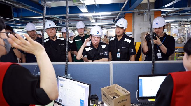Minister of Employment and Labor Kim Young-hoon made an unannounced visit to the Coupang Dongtan Logistics Center in Hwaseong, Gyeonggi Province, on July 30, 2025, to inspect the working and resting conditions of workers amid the heatwave. (Image provided by the Ministry of Employment and Labor)