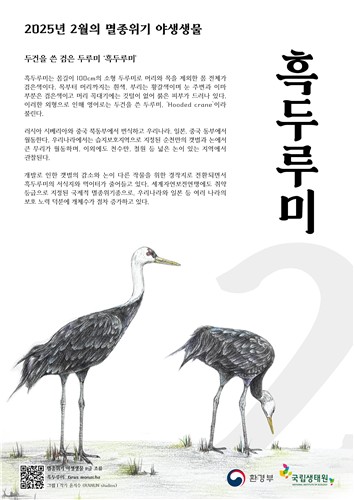 SEOUL, Feb. 3 (Korea Bizwire) — The Ministry of Environment has designated the black crane or hooded crane (Grus monacha) as February’s “Endangered Species of the Month,” highlighting the growing conservation concerns surrounding the migratory bird, officials announced on Sunday.