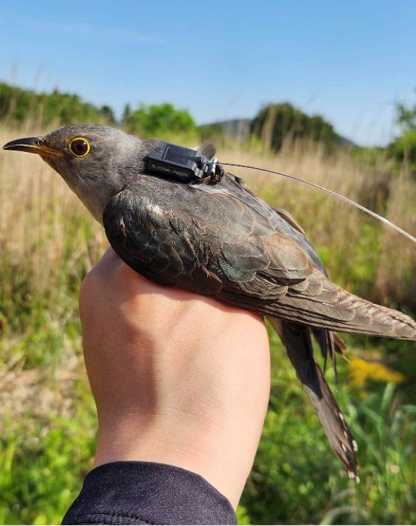 Lesser cuckoo fitted with a GPS tracker (May 23, 2024) in Seonheul-ri, Jocheon-eup, Jeju City (Image courtesy of the National Institute of Biological Resources)