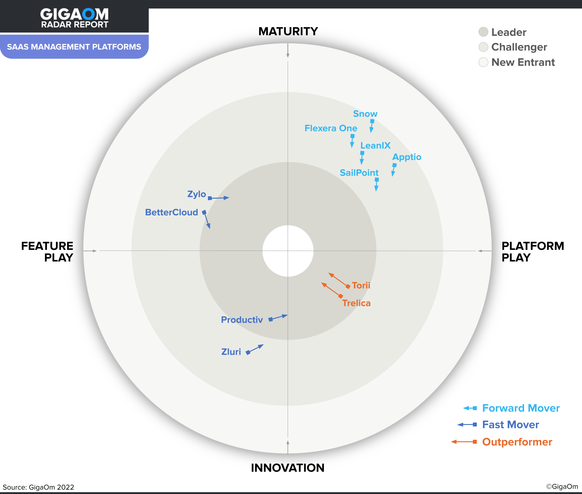 The GigaOm Radar report highlights key Software-as-a-Service Management Platform vendors, equipping IT decision-makers with the information they need to select the best fit for their business and use case requirements. Specifically, the report locates companies on two key axes: ‘maturity’ and ‘innovation’ based on evaluated criteria such as feature-richness, scalability, performance and total cost of ownership. Industry leaders are positioned in the innermost, dark gray circle of the GigaOm ‘Radar’.