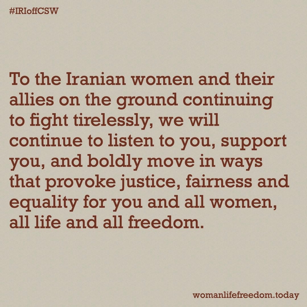 To the Iranian women who are on the ground continuing to fight tirelessly for basic human rights, we will continue to listen to you, support you, and boldly move in ways that provoke justice, fairness and equality for you and all women, all life and all freedom.