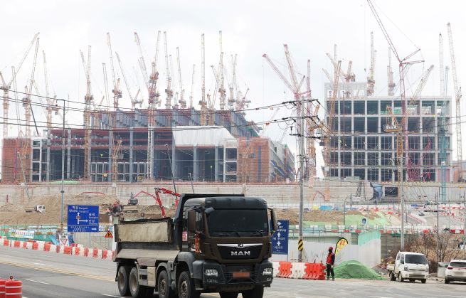 On Jan. 9, construction work is underway at the Yongin Semiconductor Cluster general industrial complex in Wonsam-myeon, Cheoin-gu, Yongin, Gyeonggi Province. (Yonhap)