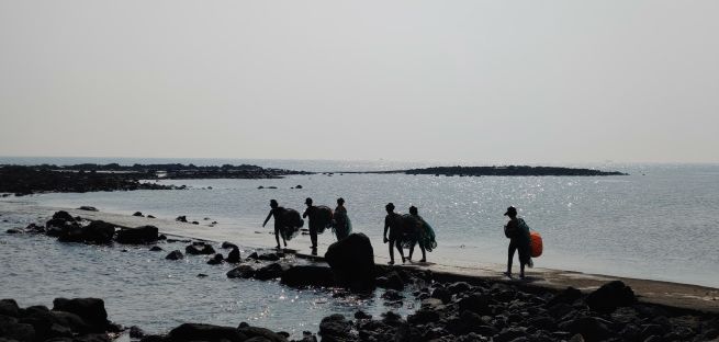 The Haenyeo Rescue Team collects marine debris that has been discarded into the sea. (Image courtesy of Jeju Maritime Police Agency)